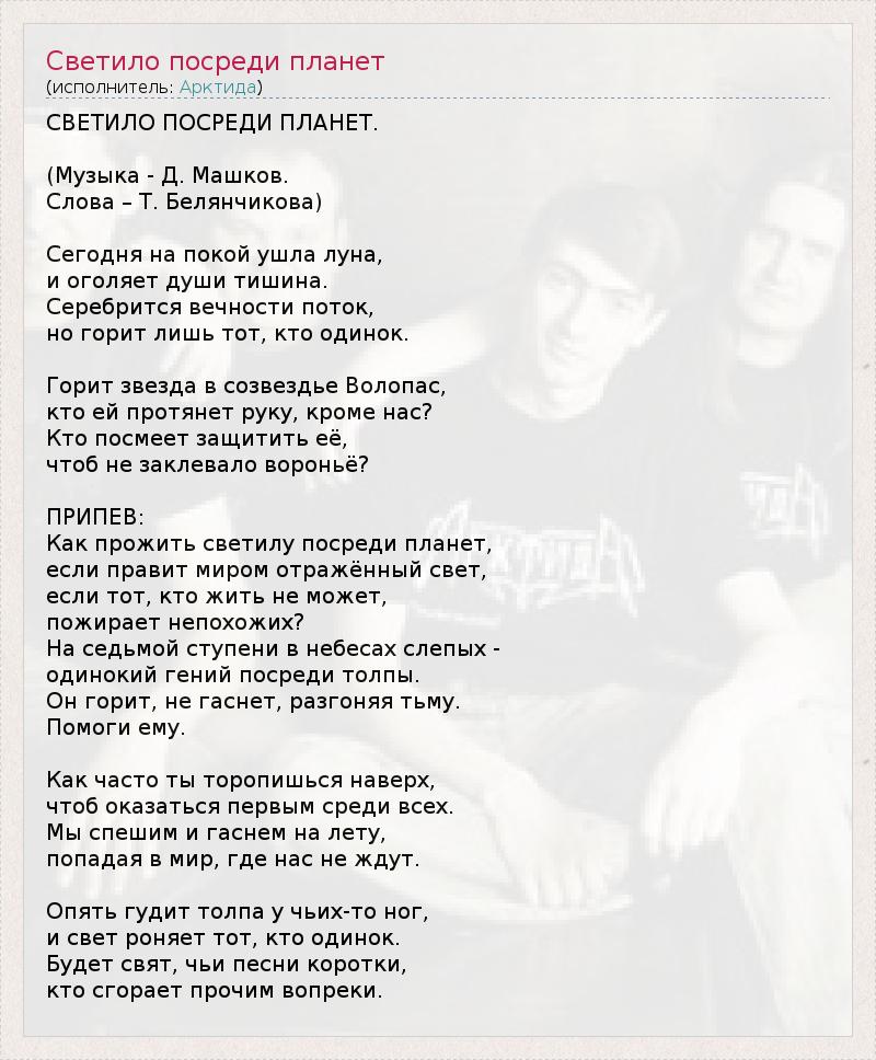ГлавнаяИсполнителиАрктидаСветило посреди планет