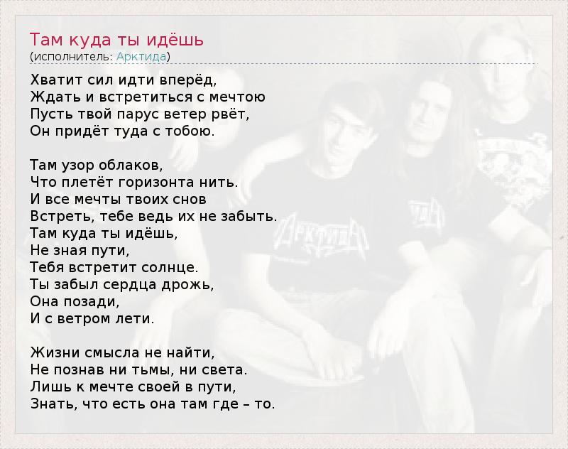 ГлавнаяИсполнителиАрктидаТам куда ты идёшь