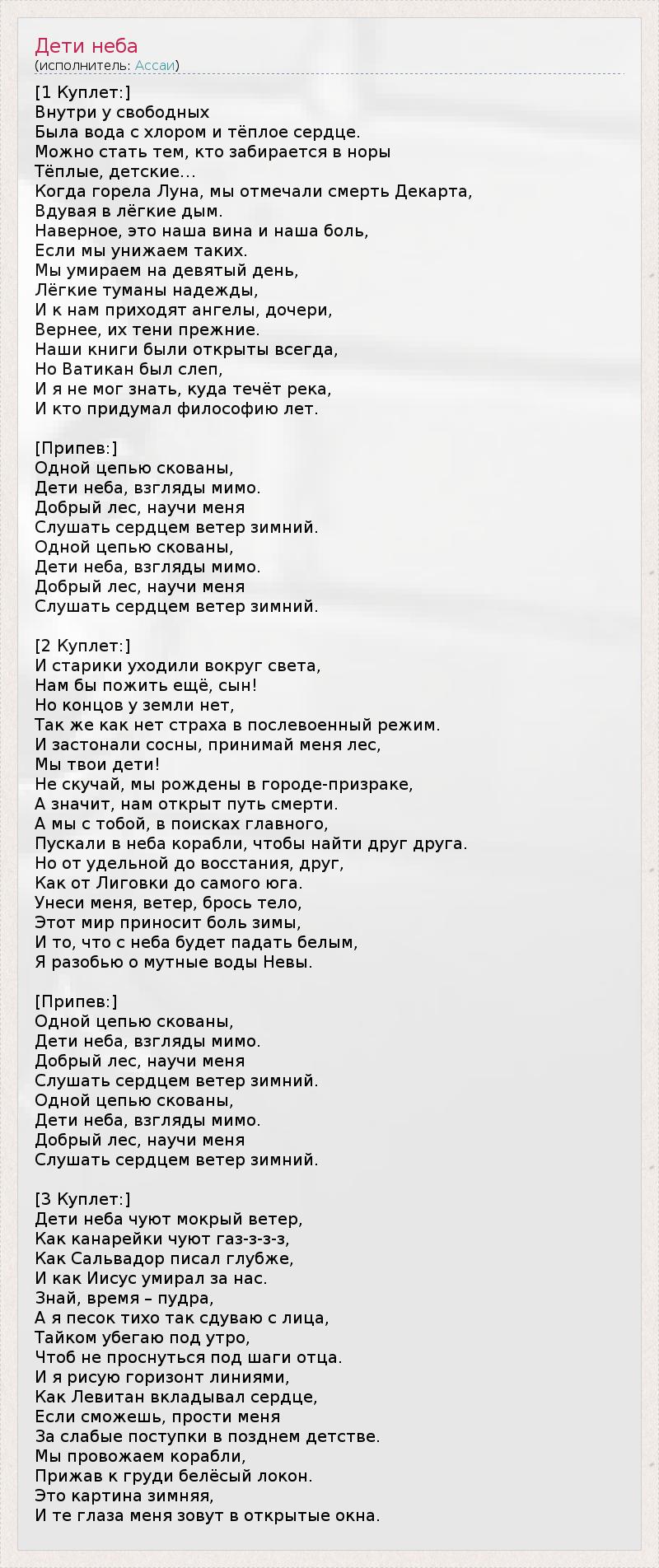 А как ты думаешь, о чем песня "Дети неба" ?