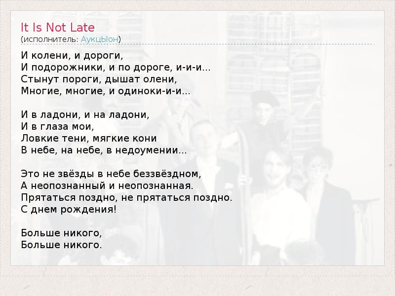 А как ты думаешь, о чем песня "It Is Not Late" ?
