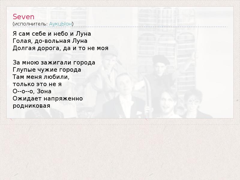 Это интересно:Россия, г. Санкт-Петербург — г. Москва. За почти три десятка лет «АукцЫон», образец отечественной музыкальной самобытности, прошел путь поистине удивительный. От балаганных выступлений на убитых вдребезги инструментах, после которых редкая публика не морщила нос и не называла музыкантов «шутами гороховыми», до сотрудничества с мировыми классиками аван-джаза.Эта грандиозная группа... продолжение