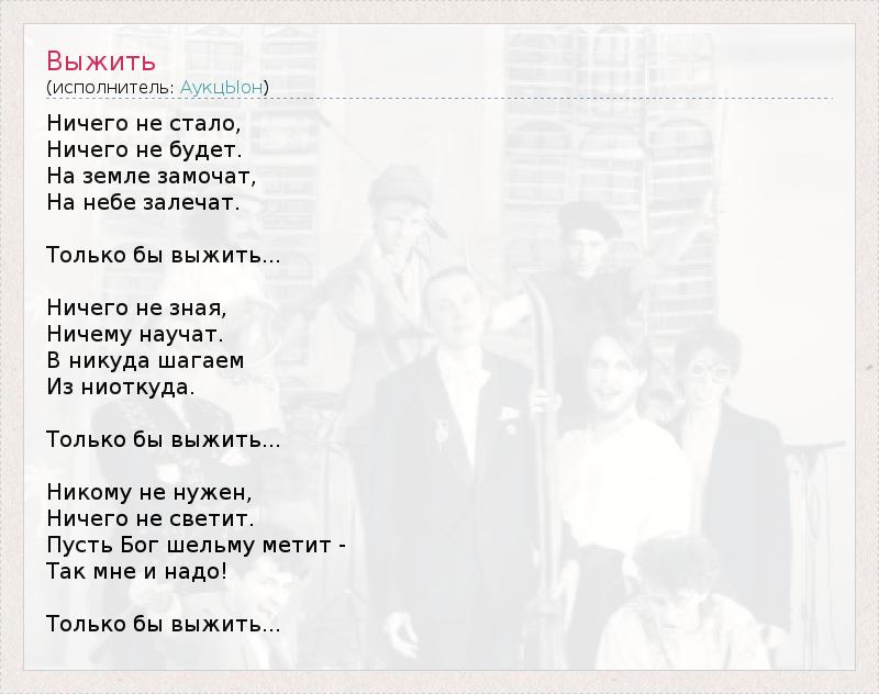 А как ты думаешь, о чем песня "Выжить" ?