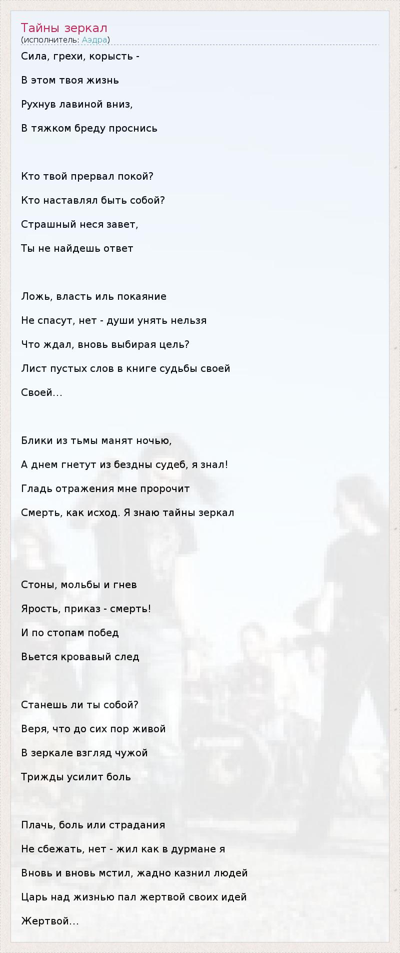 ГлавнаяИсполнителиАэдраТайны зеркал