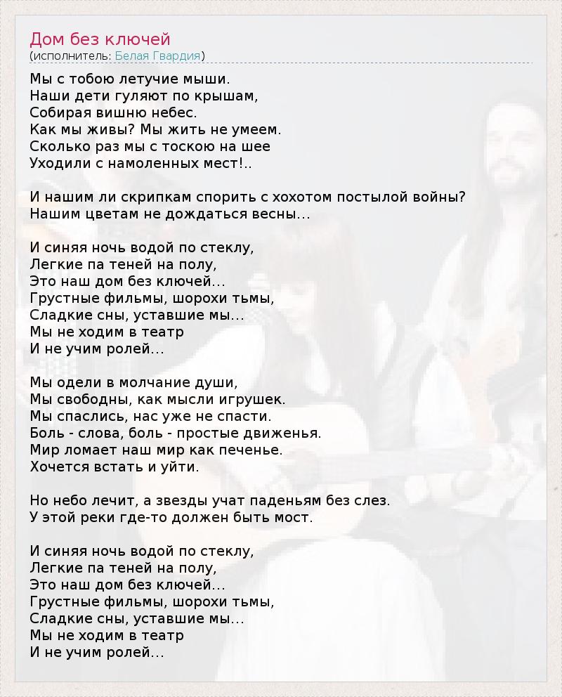 А как ты думаешь, о чем песня "Дом без ключей" ?