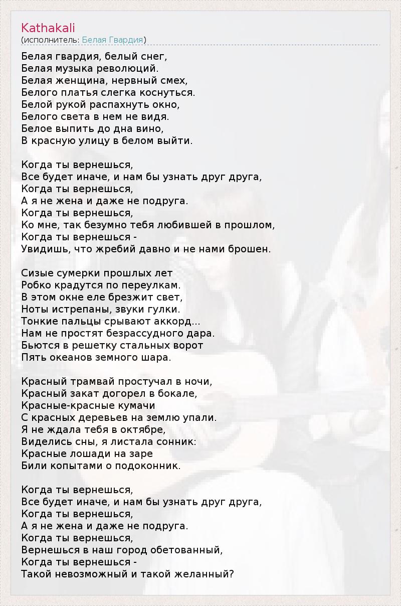 Это интересно:Годом рождения группы можно считать 1993 год, когда Зоя Ященко записала первый сольный альбом с одноимённым названием «Белая гвардия». Тогда же состоялись первые сольные концерты в Москве в концертных залах Олимпийской деревни, ДК МЭИ, ДК «Меридиан»,... продолжение