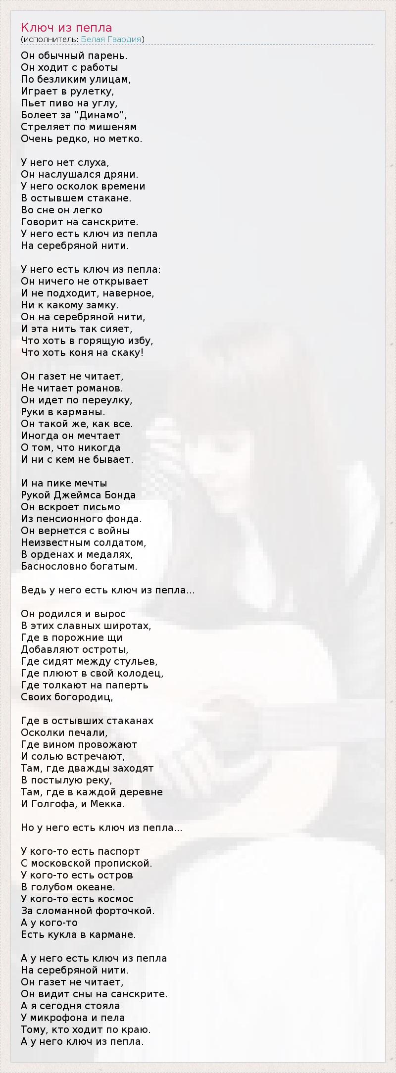 А как ты думаешь, о чем песня "Ключ из пепла" ?