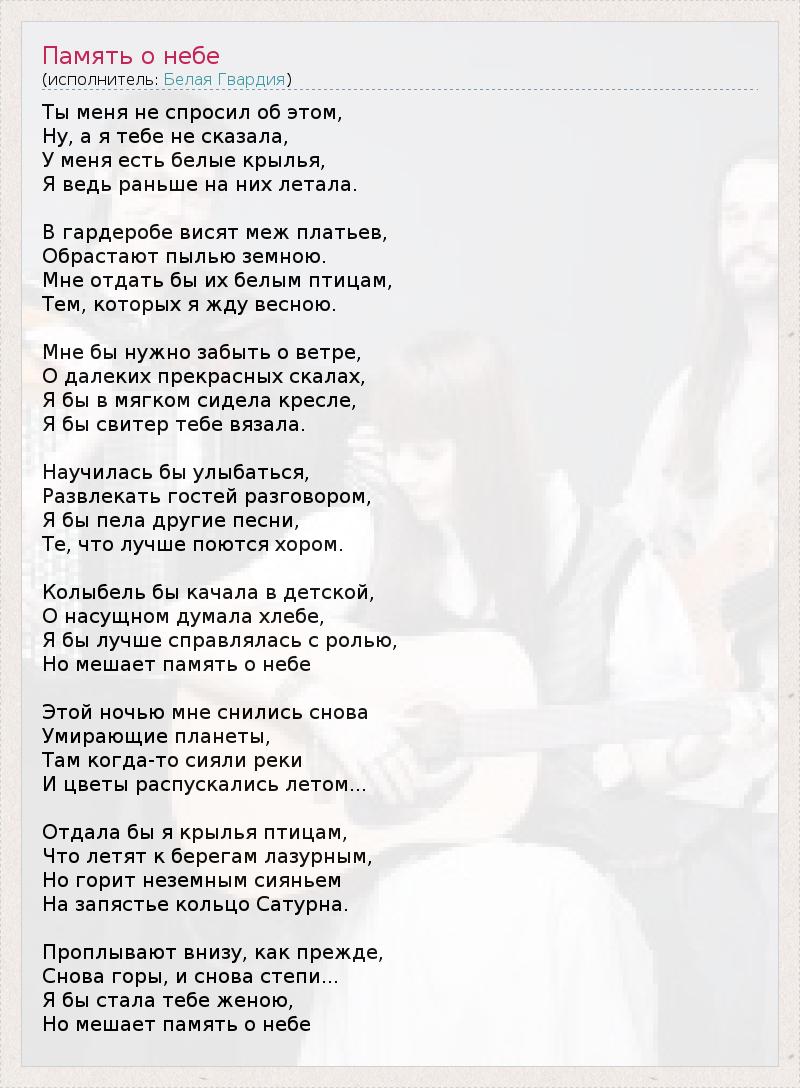 А как ты думаешь, о чем песня "Память о небе" ?