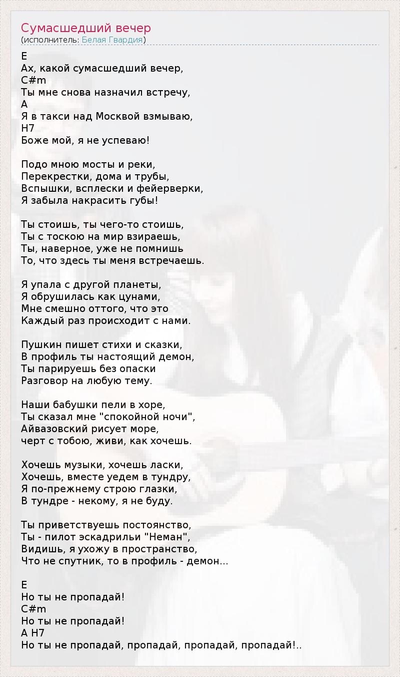ГлавнаяИсполнителиБелая ГвардияСумасшедший вечер
