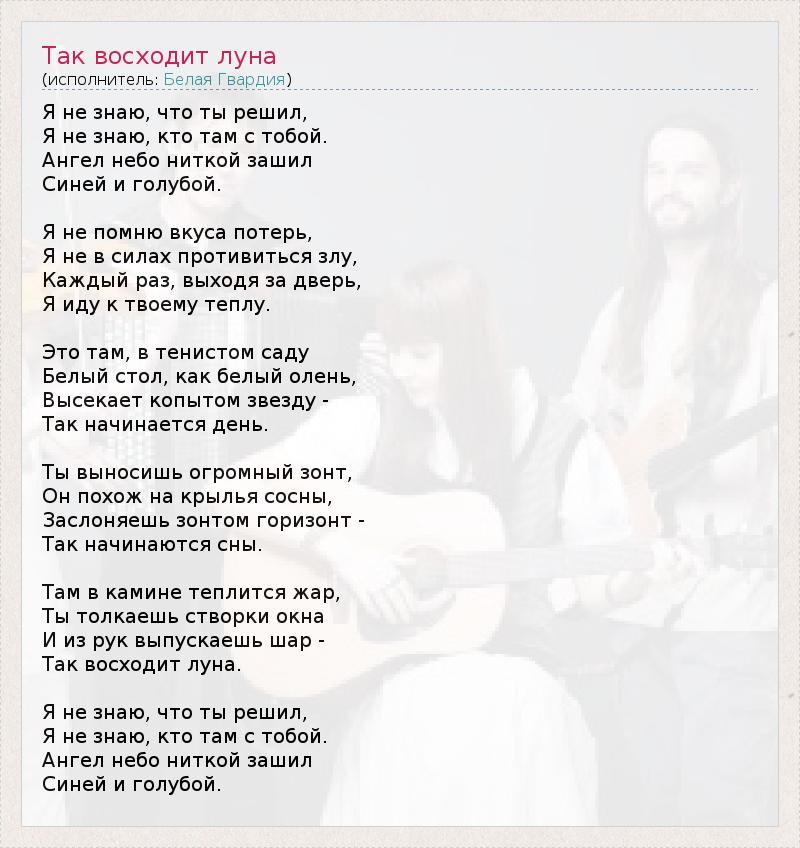 ГлавнаяИсполнителиБелая ГвардияТак восходит луна