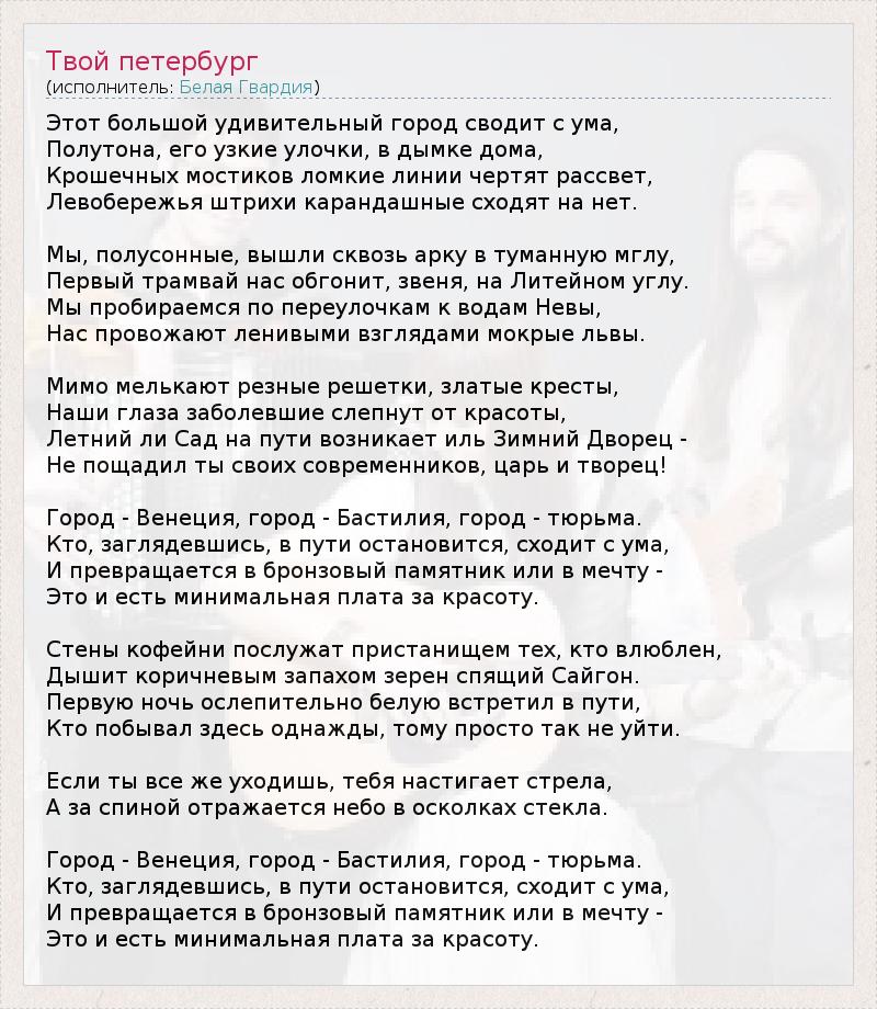 А как ты думаешь, о чем песня "Твой петербург" ?