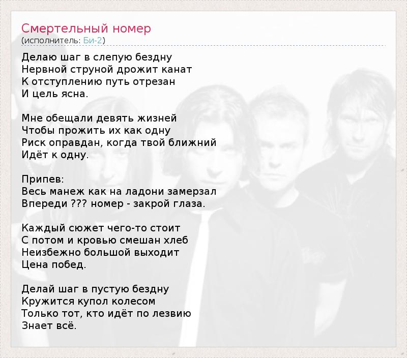 ГлавнаяИсполнителиБи-2Смертельный номер
