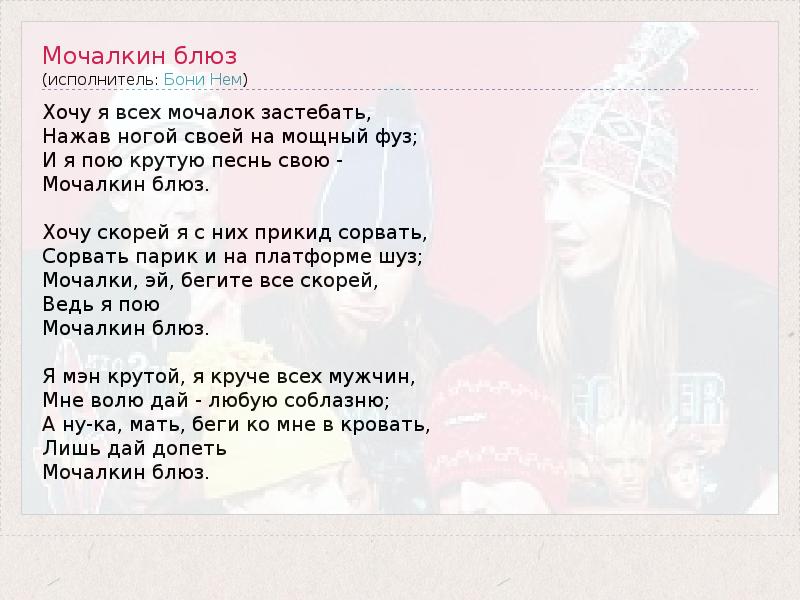 А как ты думаешь, о чем песня "Мочалкин блюз" ?