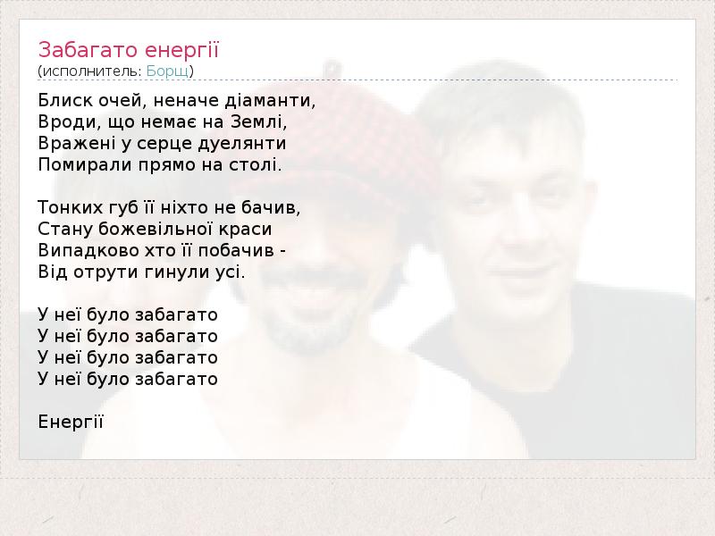 ГлавнаяИсполнителиБорщЗабагато енергії
