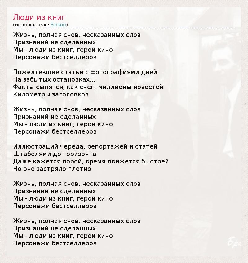 А как ты думаешь, о чем песня "Люди из книг" ?