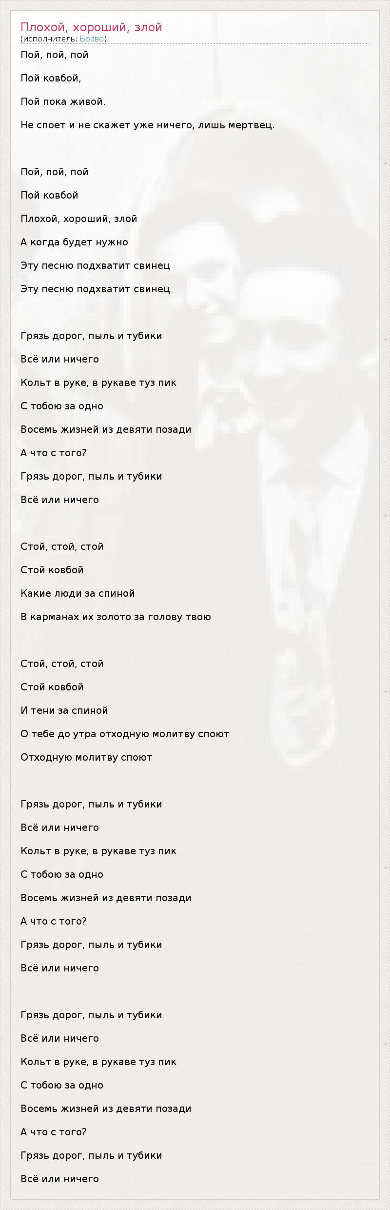 ГлавнаяИсполнителиБравоПлохой, хороший, злой