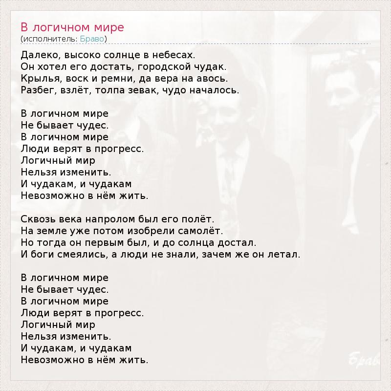 А как ты думаешь, о чем песня "В логичном мире" ?