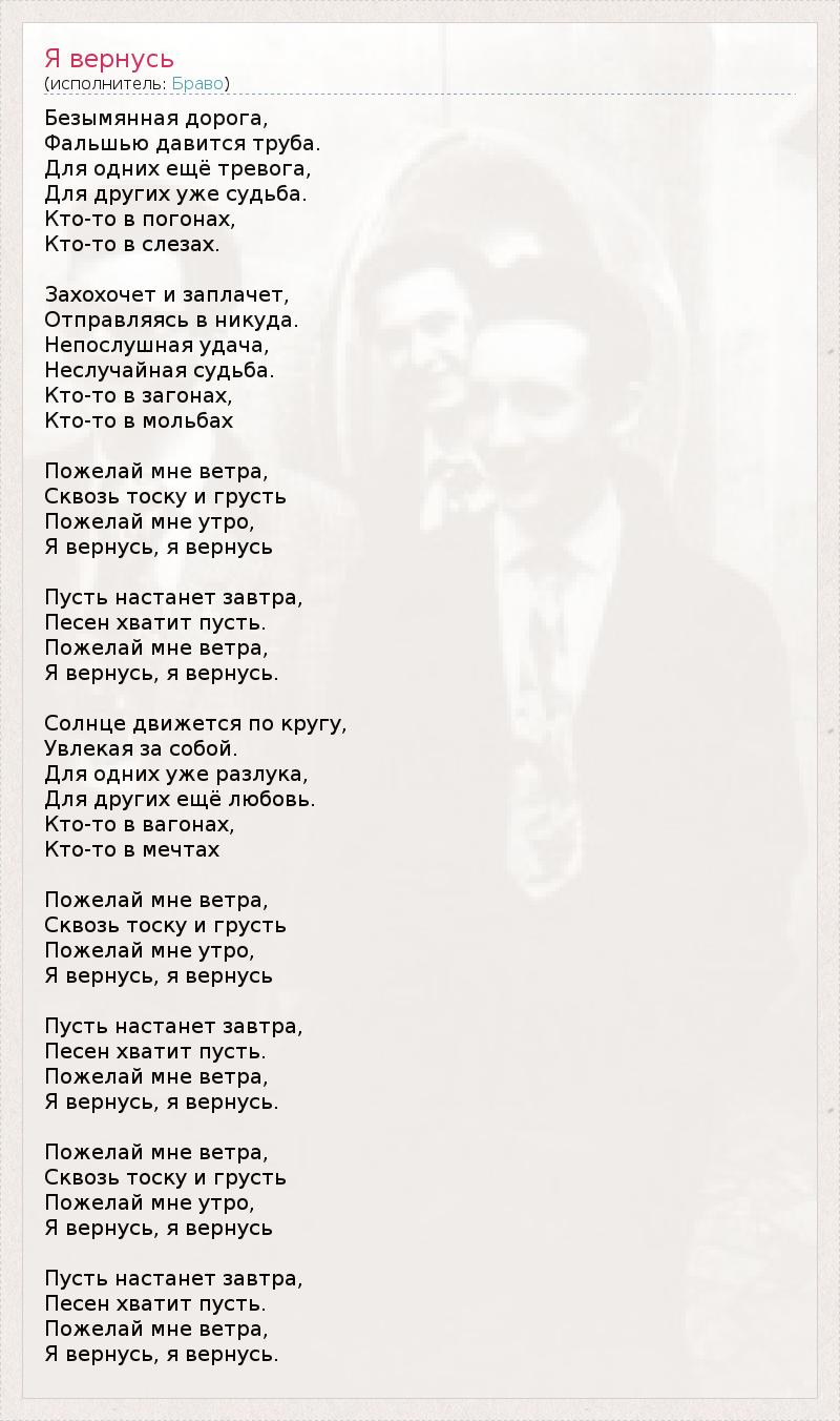 А как ты думаешь, о чем песня "Я вернусь" ?