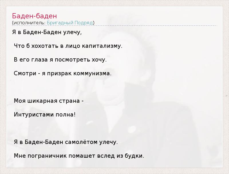 А как ты думаешь, о чем песня "Баден-баден" ?