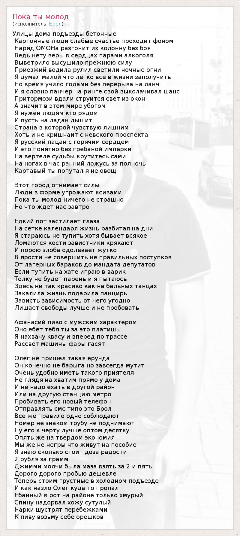 А как ты думаешь, о чем песня "Пока ты молод" ?