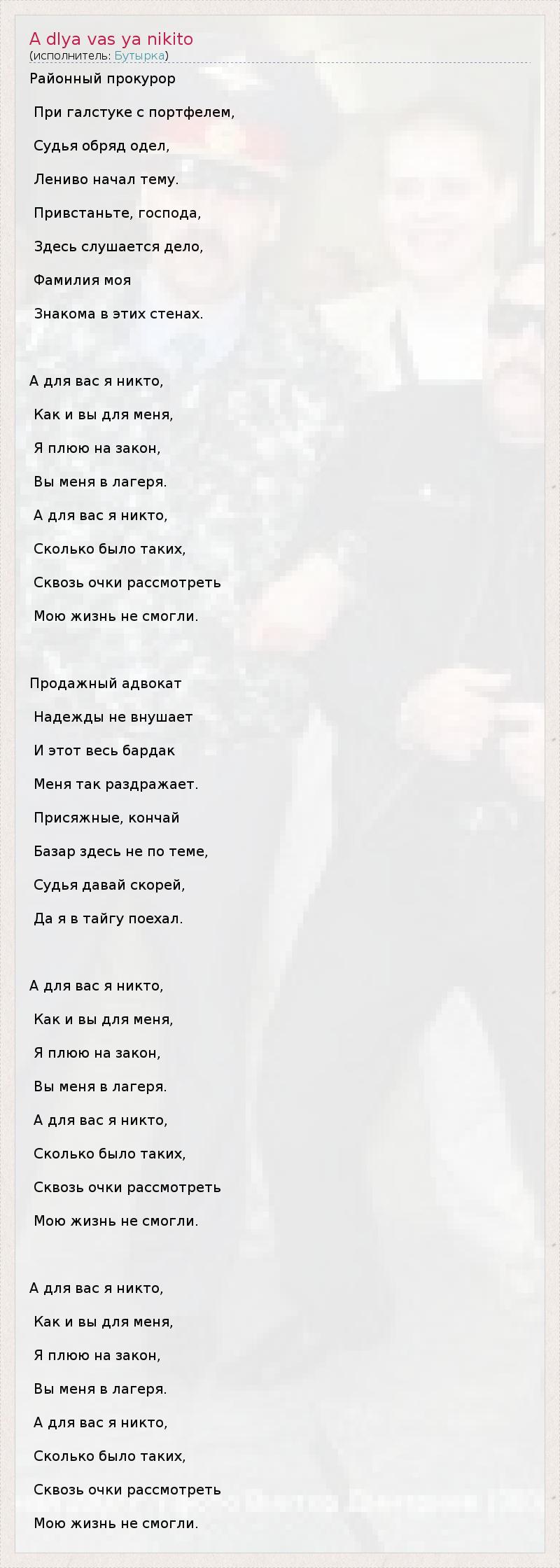 А как ты думаешь, о чем песня "A dlya vas ya nikito" ?