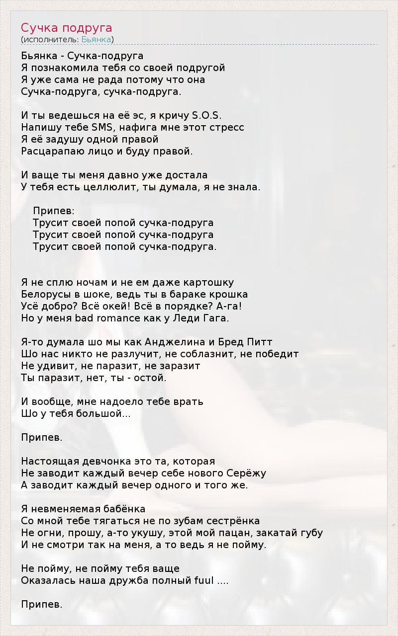 ГлавнаяИсполнителиБьянкаСучка подруга