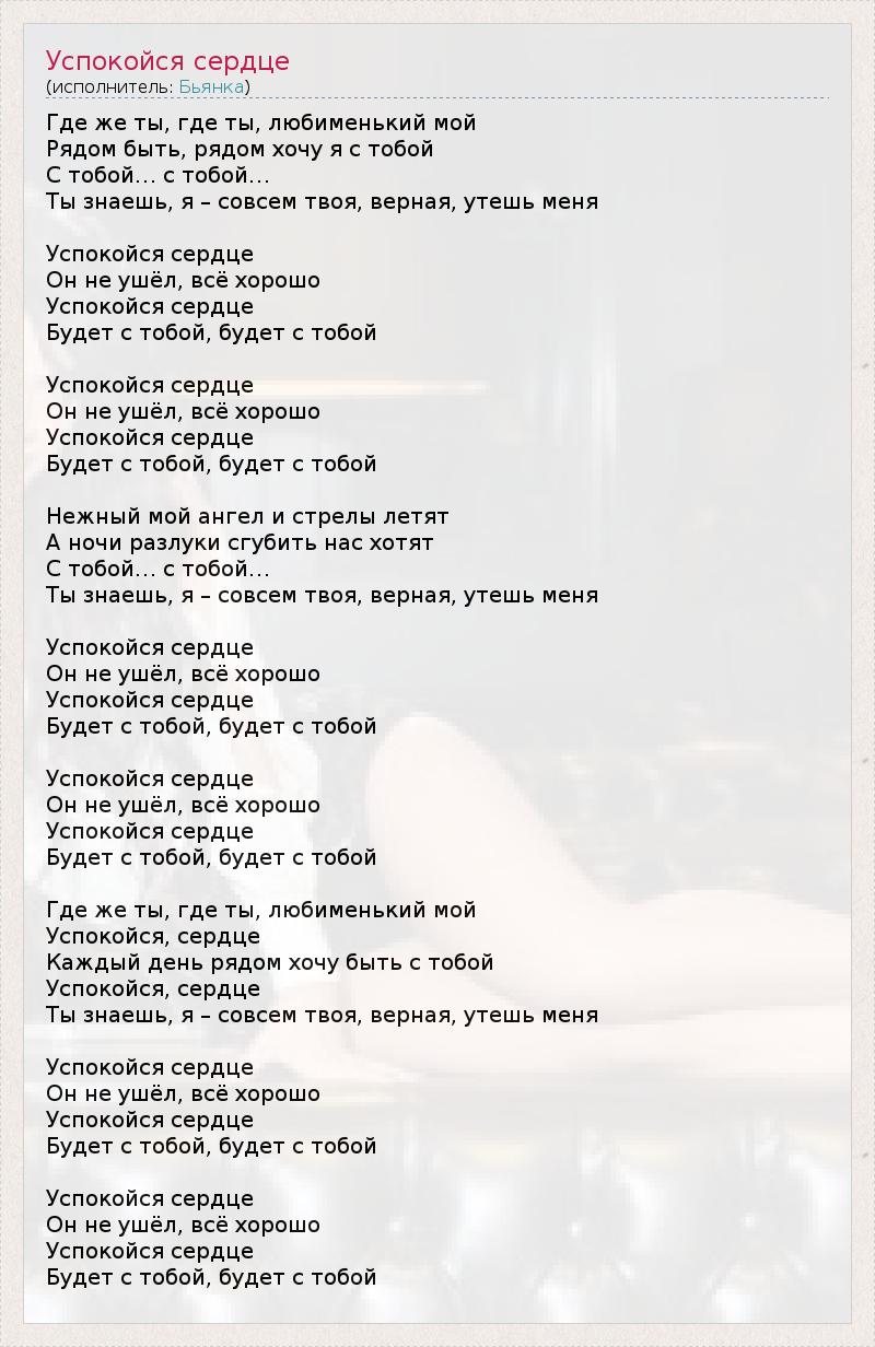 ГлавнаяИсполнителиБьянкаУспокойся сердце