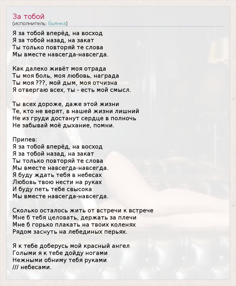 А как ты думаешь, о чем песня "За тобой" ?