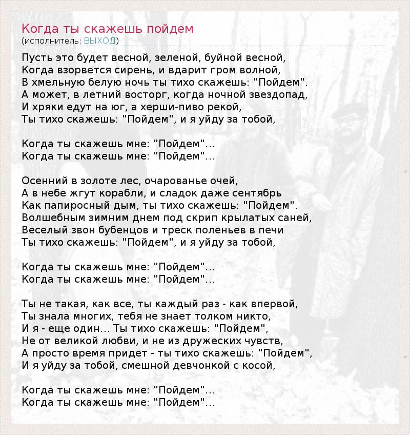 ГлавнаяИсполнителиВЫХОДКогда ты скажешь пойдем