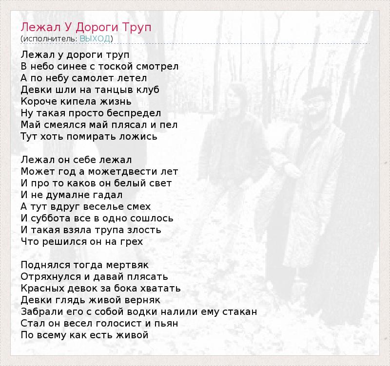 ГлавнаяИсполнителиВЫХОДЛежал У Дороги Труп