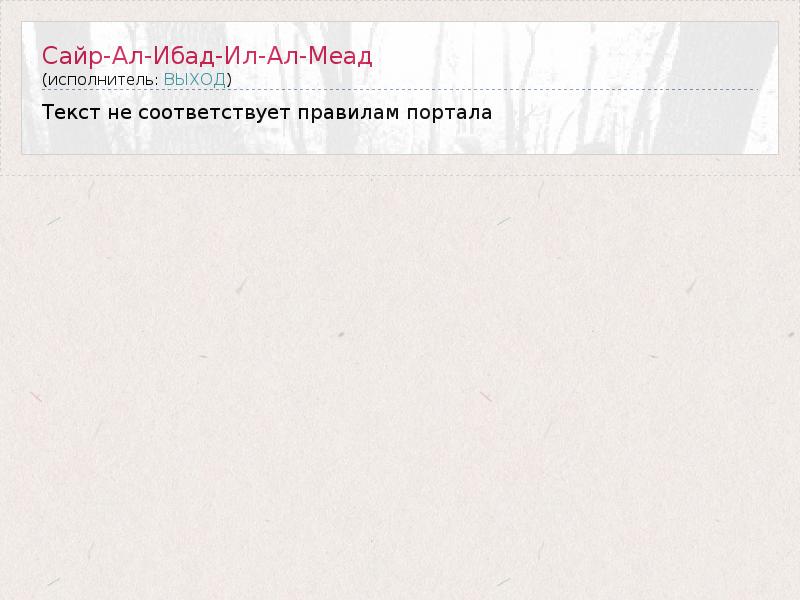 ГлавнаяИсполнителиВЫХОДСайр-Ал-Ибад-Ил-Ал-Меад