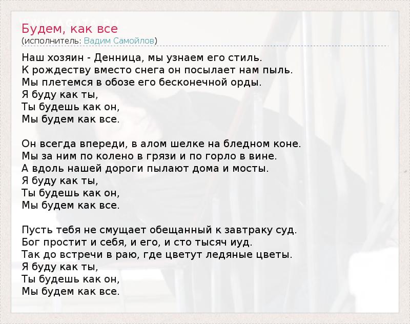 А как ты думаешь, о чем песня "Будем, как все" ?