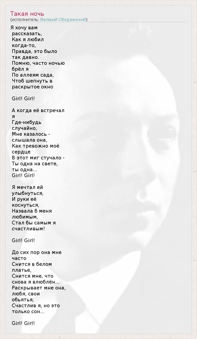 А как ты думаешь, о чем песня "Такая ночь" ?