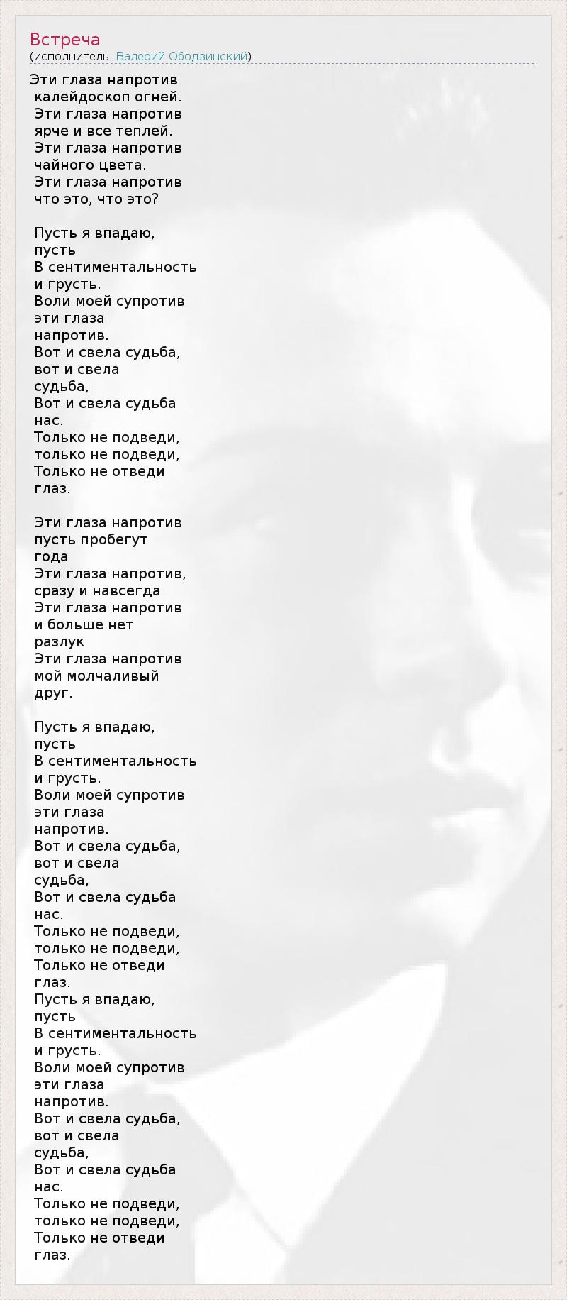 Это интересно:Валерий Владимирович Ободзинский родился 24 января 1942 года, в Одессе, на ул. Петра Великого в коммунальной квартире, в доме, где находилась консерватория. По утрам за окном была слышна музыка, звуки фортепиано. Военное время. Родители ушли на фронт.И маленького Валеру воспитывала его бабушка Домна Кузьминична. Это было время оккупации Одессы фашистами. Бабушка в то время работала дворником.... продолжение