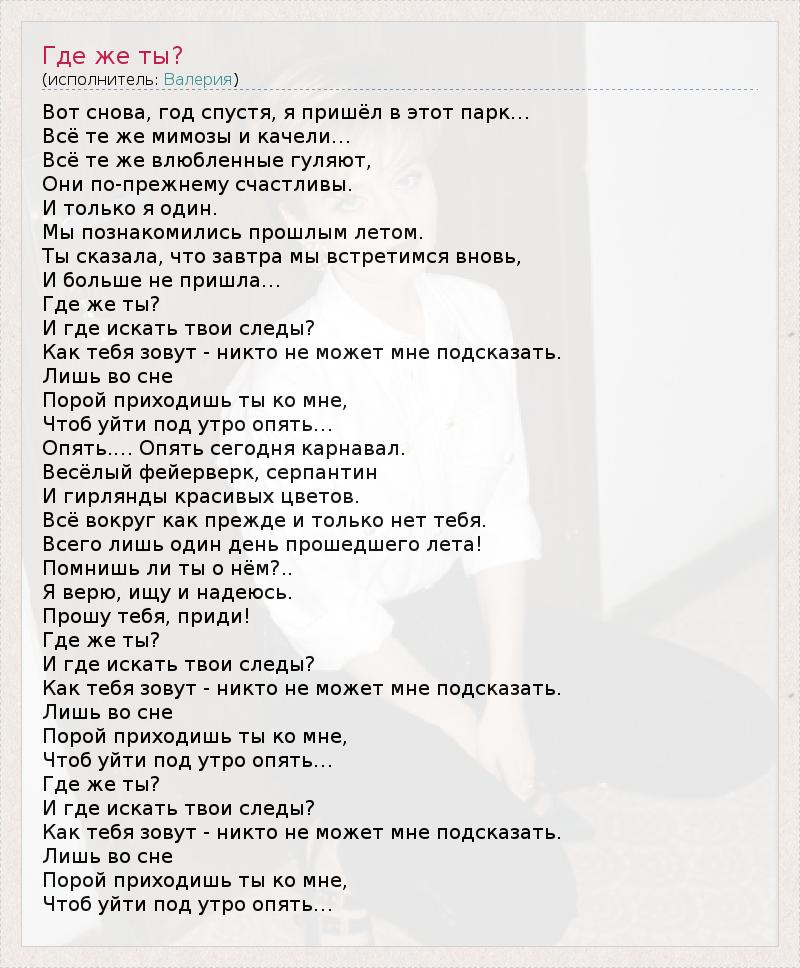 А как ты думаешь, о чем песня "Где же ты?" ?
