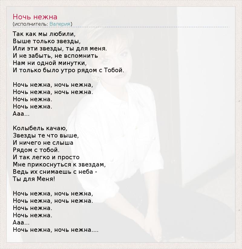 А как ты думаешь, о чем песня "Ночь нежна" ?
