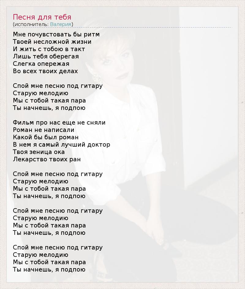 ГлавнаяИсполнителиВалерияПесня для тебя