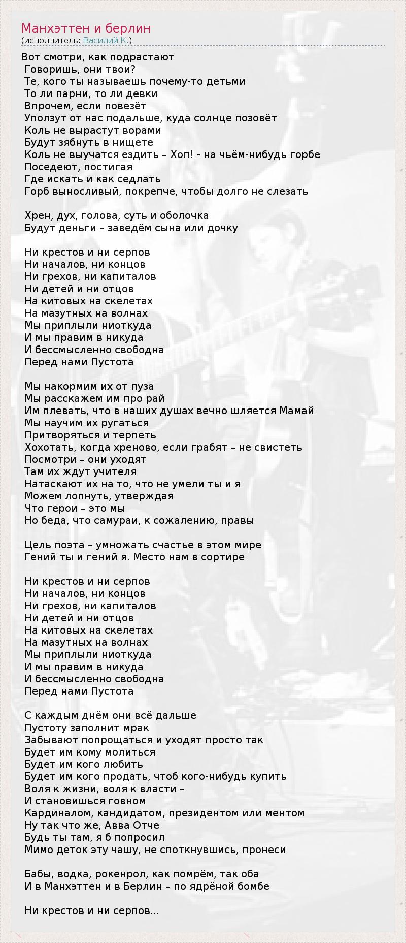 А как ты думаешь, о чем песня "Манхэттен и берлин" ?