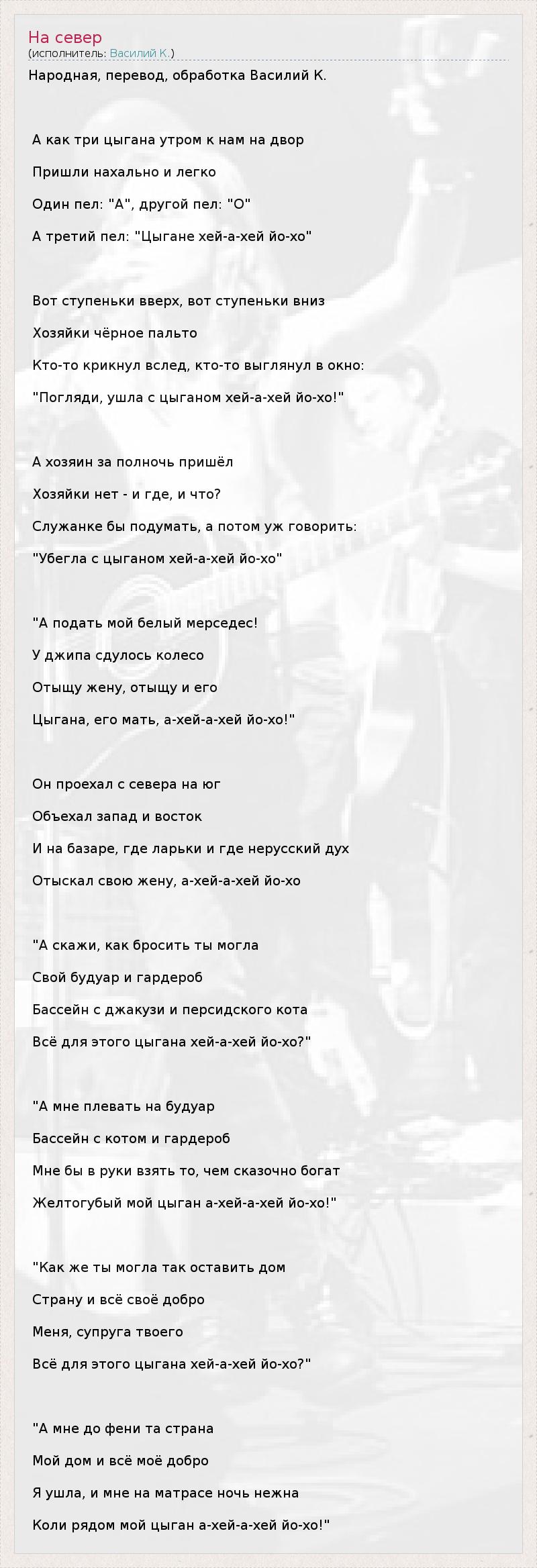 Цыгана, его мать, а-хей-а-хей йо-хо!"