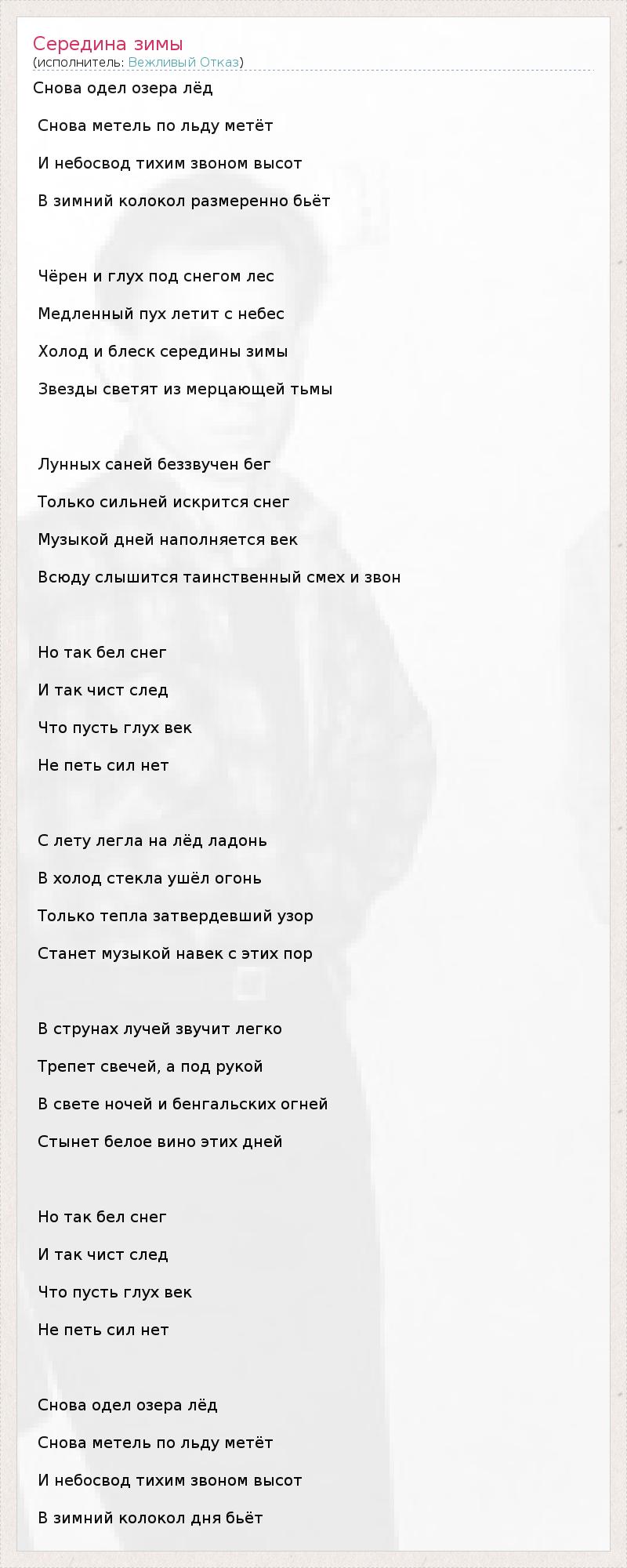 А как ты думаешь, о чем песня "Середина зимы" ?