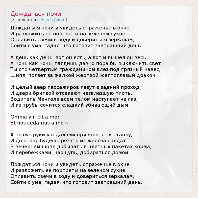 А как ты думаешь, о чем песня "Дождаться ночи" ?
