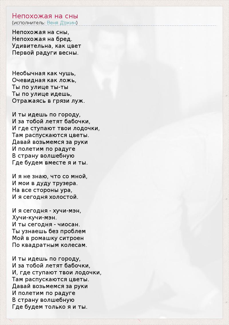 ГлавнаяИсполнителиВеня Д'ркинНепохожая на сны