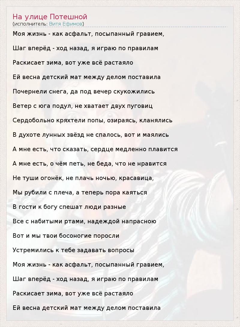 ГлавнаяИсполнителиВитя ЕфимовНа улице Потешной