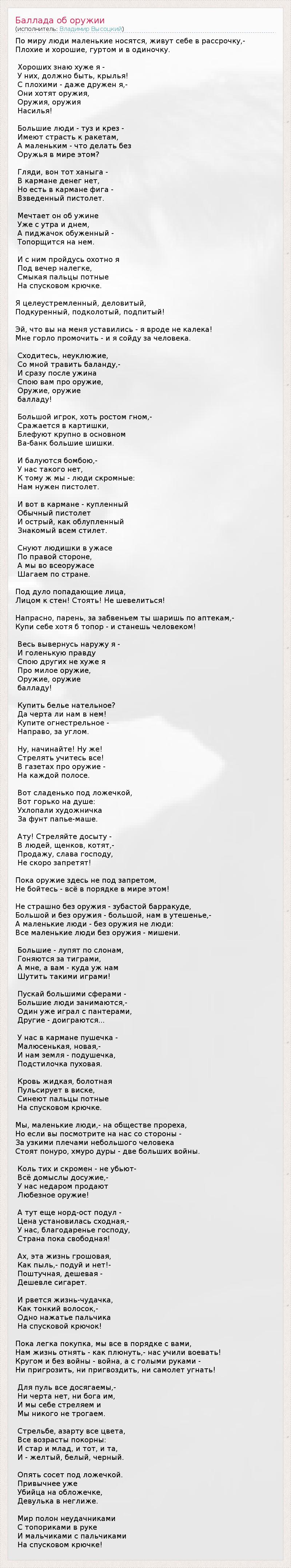 А как ты думаешь, о чем песня "Баллада об оружии" ?