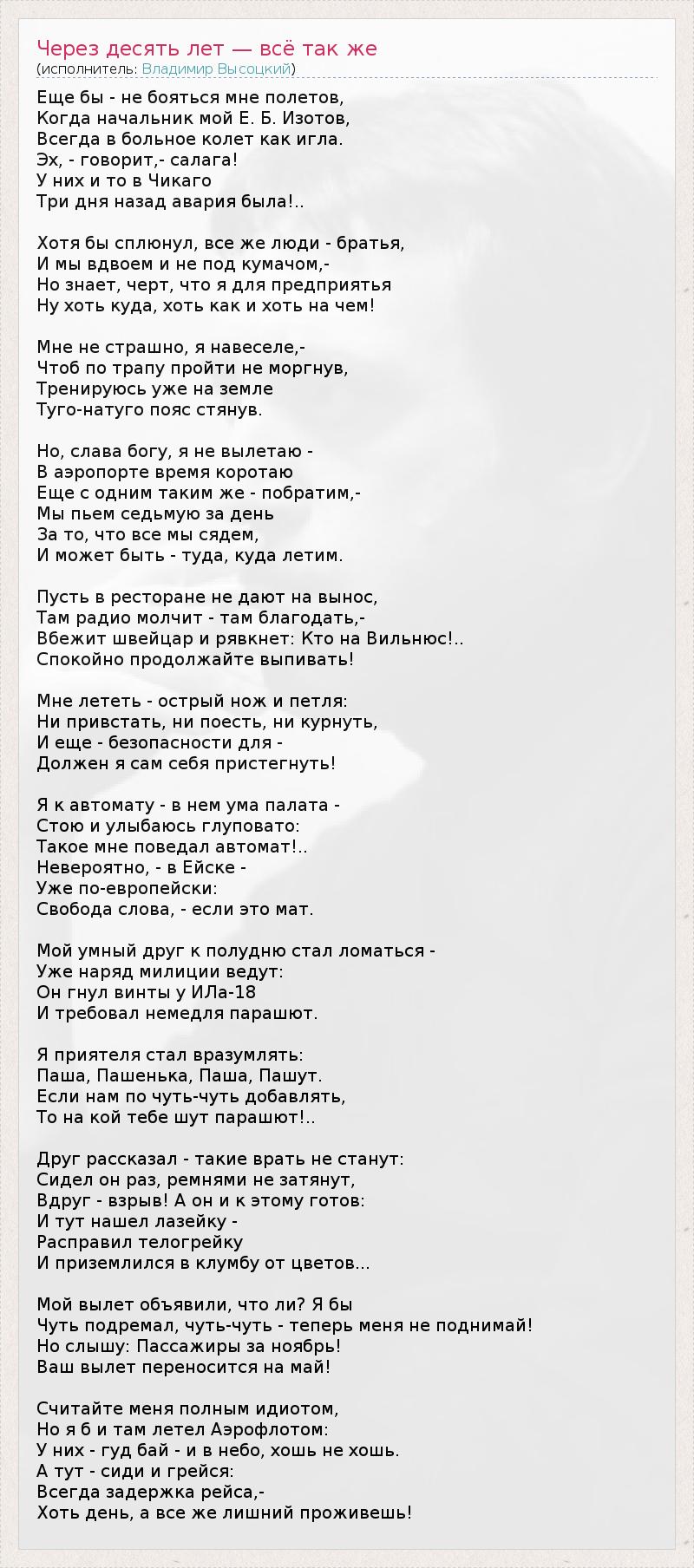 ГлавнаяИсполнителиВладимир ВысоцкийЧерез десять лет — всё так же