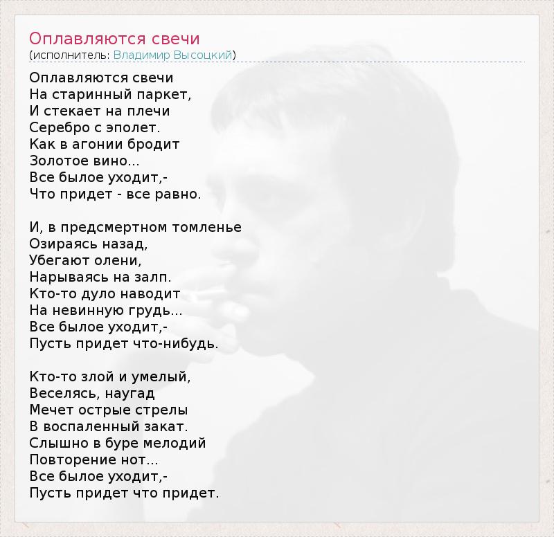 А как ты думаешь, о чем песня "Оплавляются свечи" ?