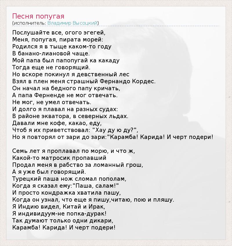 А как ты думаешь, о чем песня "Песня попугая" ?