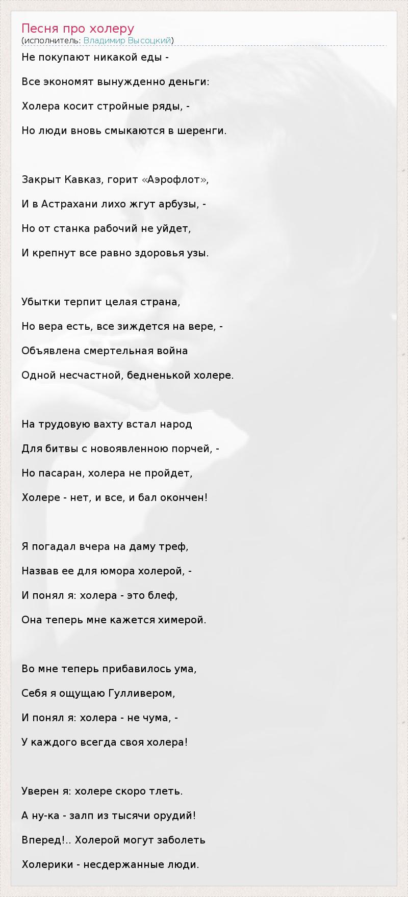 Песня про холеру