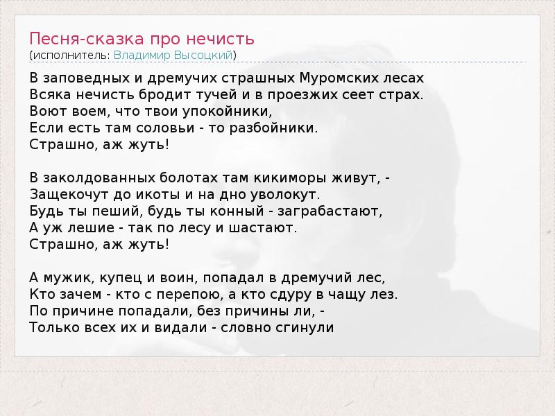 ГлавнаяИсполнителиВладимир ВысоцкийПесня-сказка про нечисть