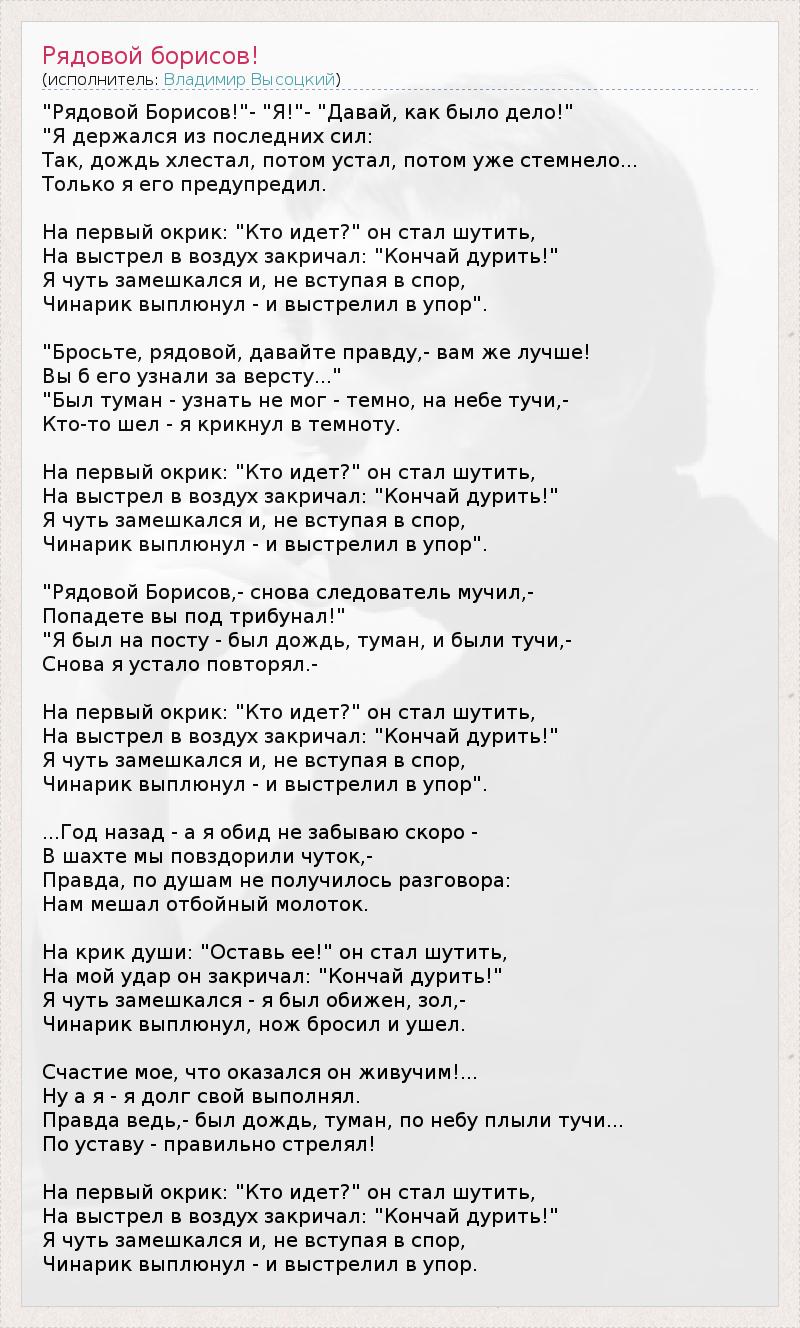 А как ты думаешь, о чем песня "Рядовой борисов!" ?