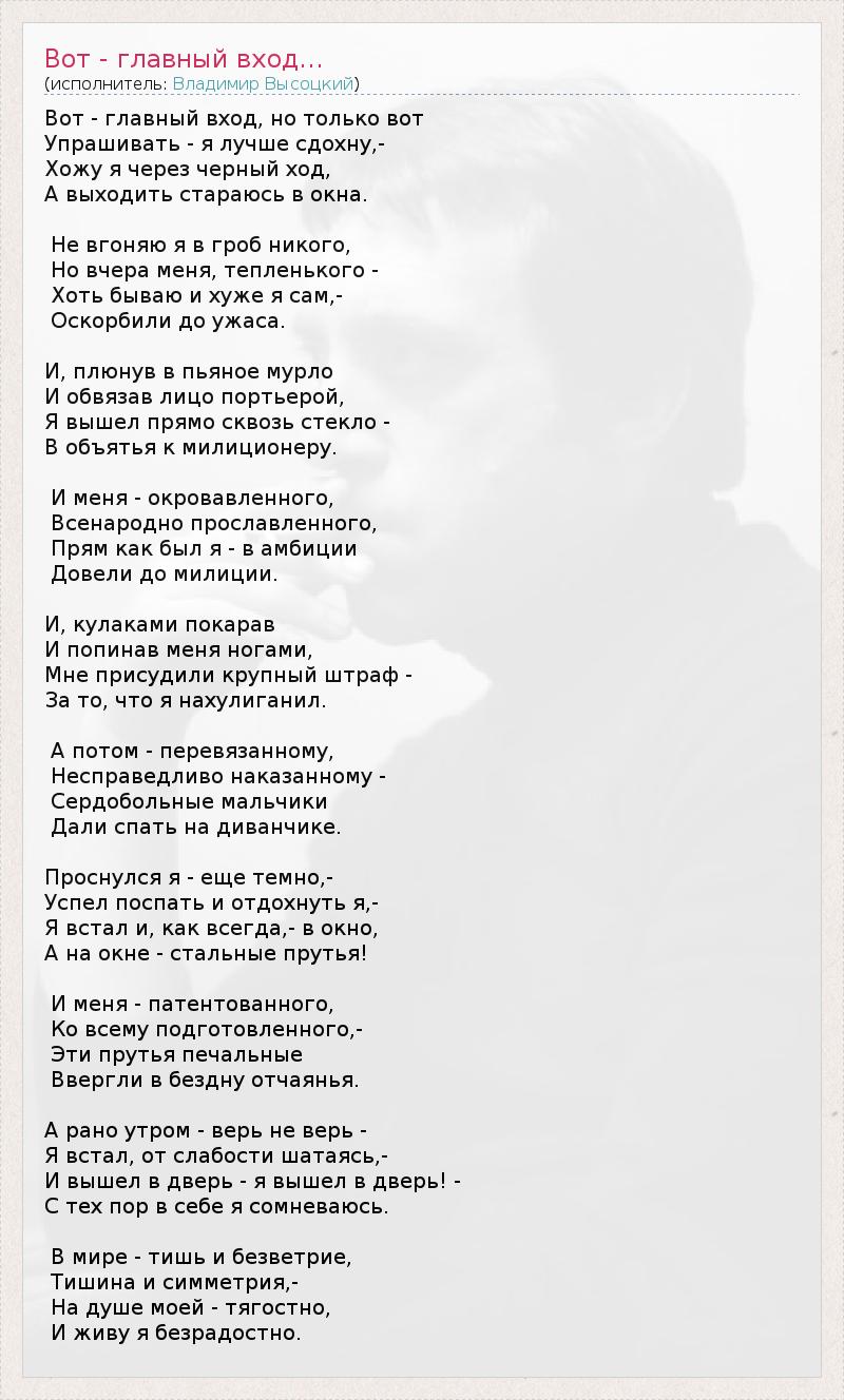 А как ты думаешь, о чем песня "Вот - главный вход..." ?